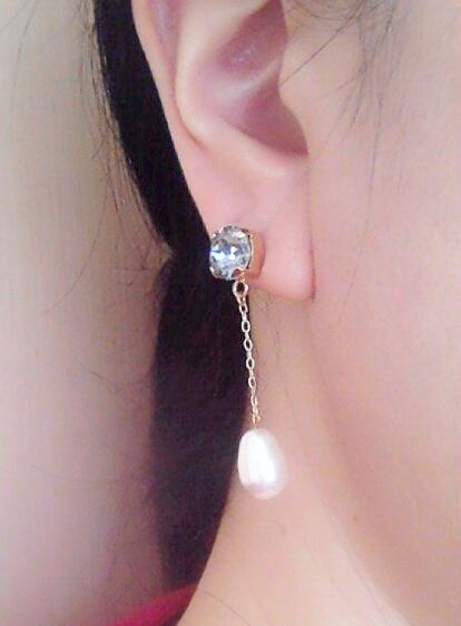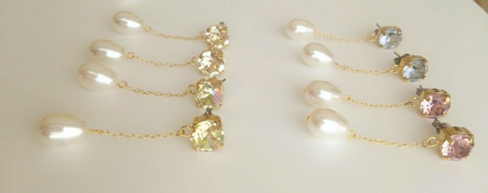 スワロフスキーとスワロスキーパールの揺れるピアスです。