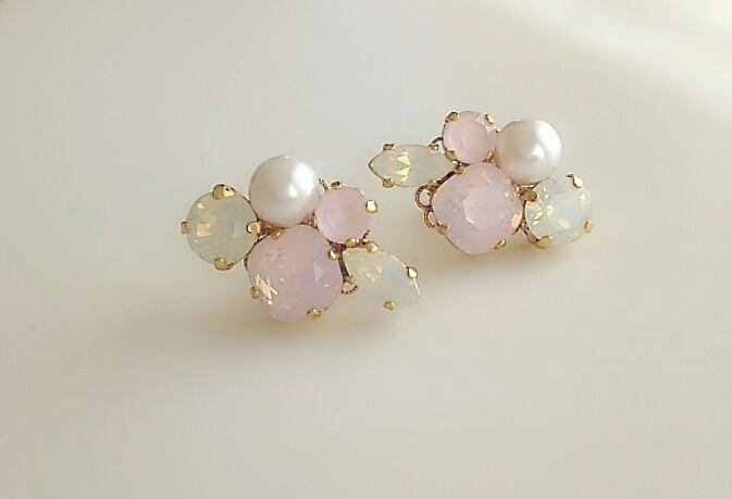 スワロフスキーを使った春色のビジューピアスです。